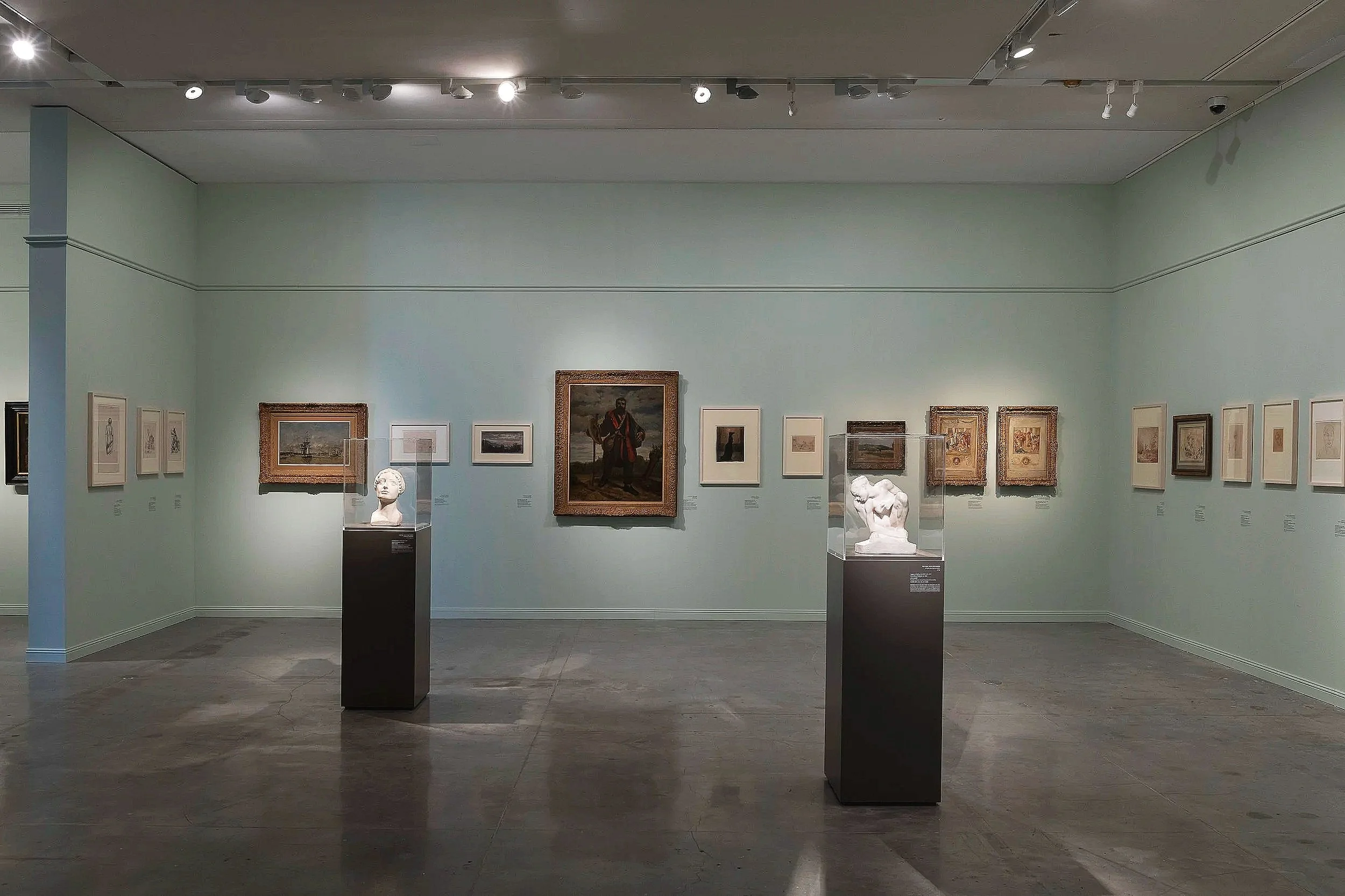 Along the perimeter walls, artworks acquired by Gurlitt were exhibited, while openings in the central space allowed glimpses across the gallery, creating a layered experience of history and art.