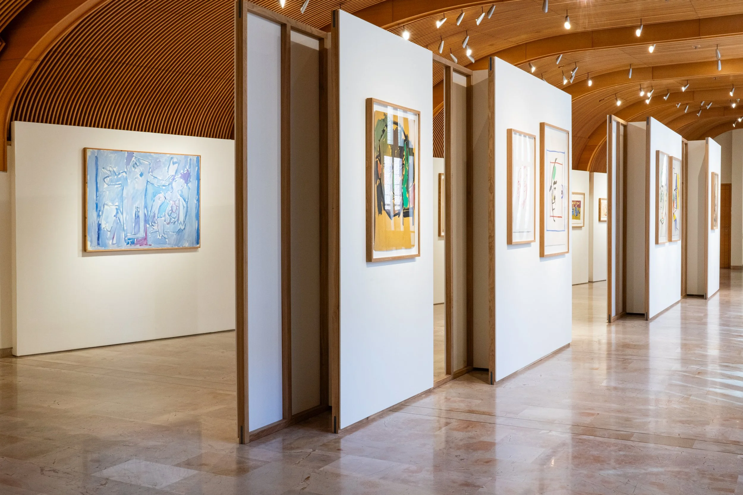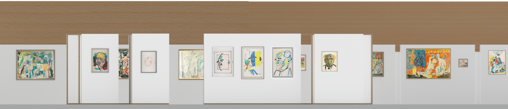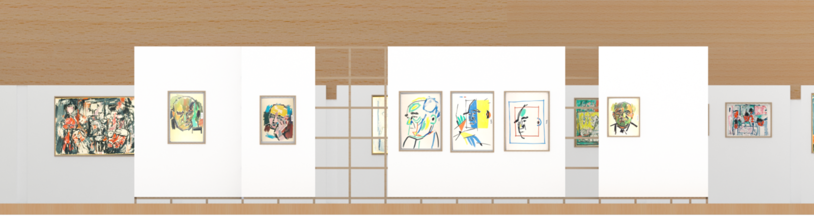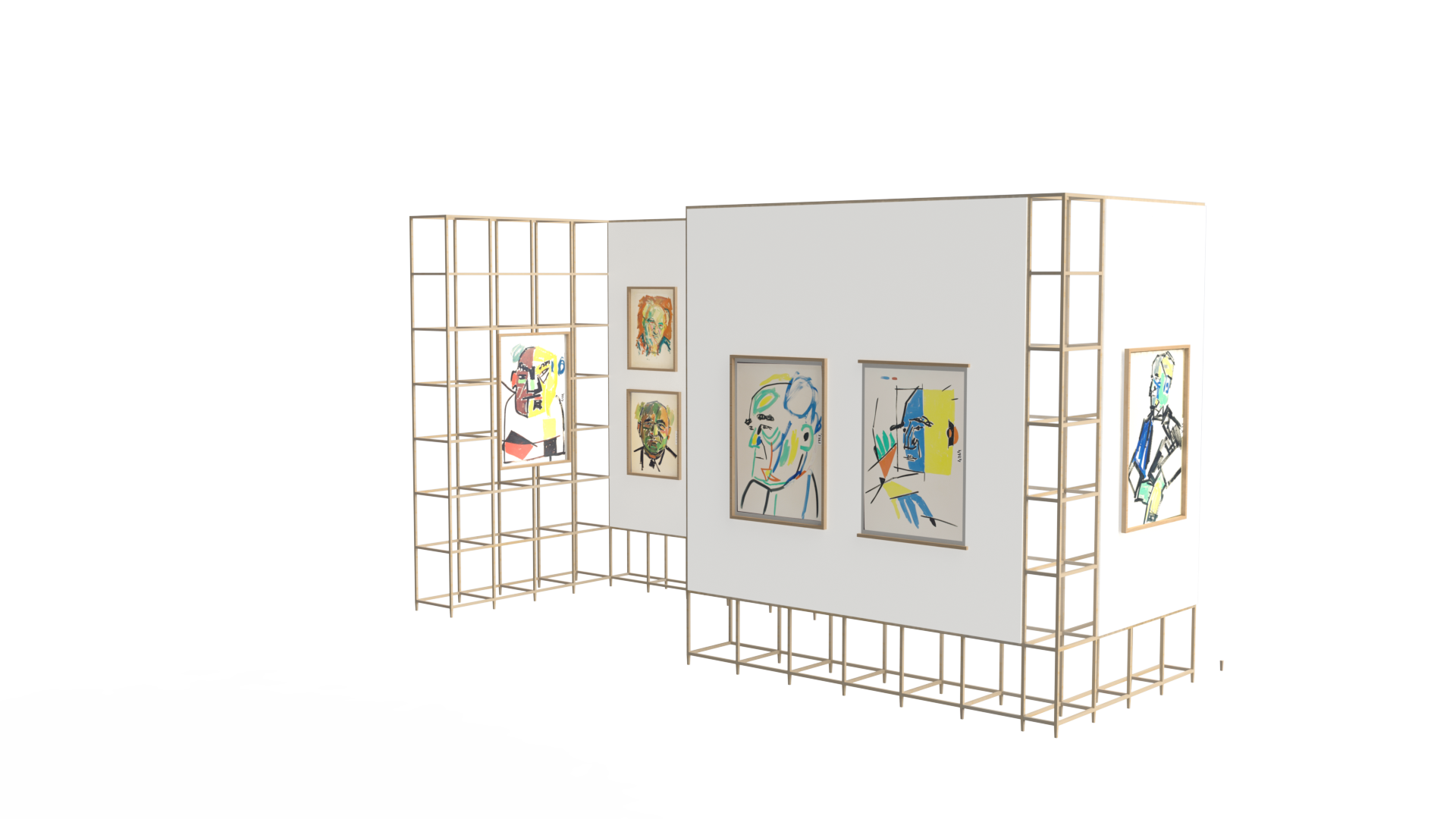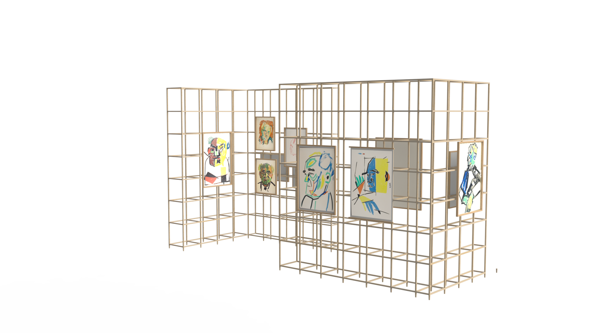 Gallery partitions echoed the layered, informal organization of Litvinovsky’s studio and storage spaces, evoking a sense of work in progress. A key design decision was the incorporation of an interactive AI element, allowing visitors to generate customized portraits in the styles explored by Litvinovsky. This digital, participatory feature enabled visitors to share their portraits online, drawing attention to the exhibition and extending engagement.