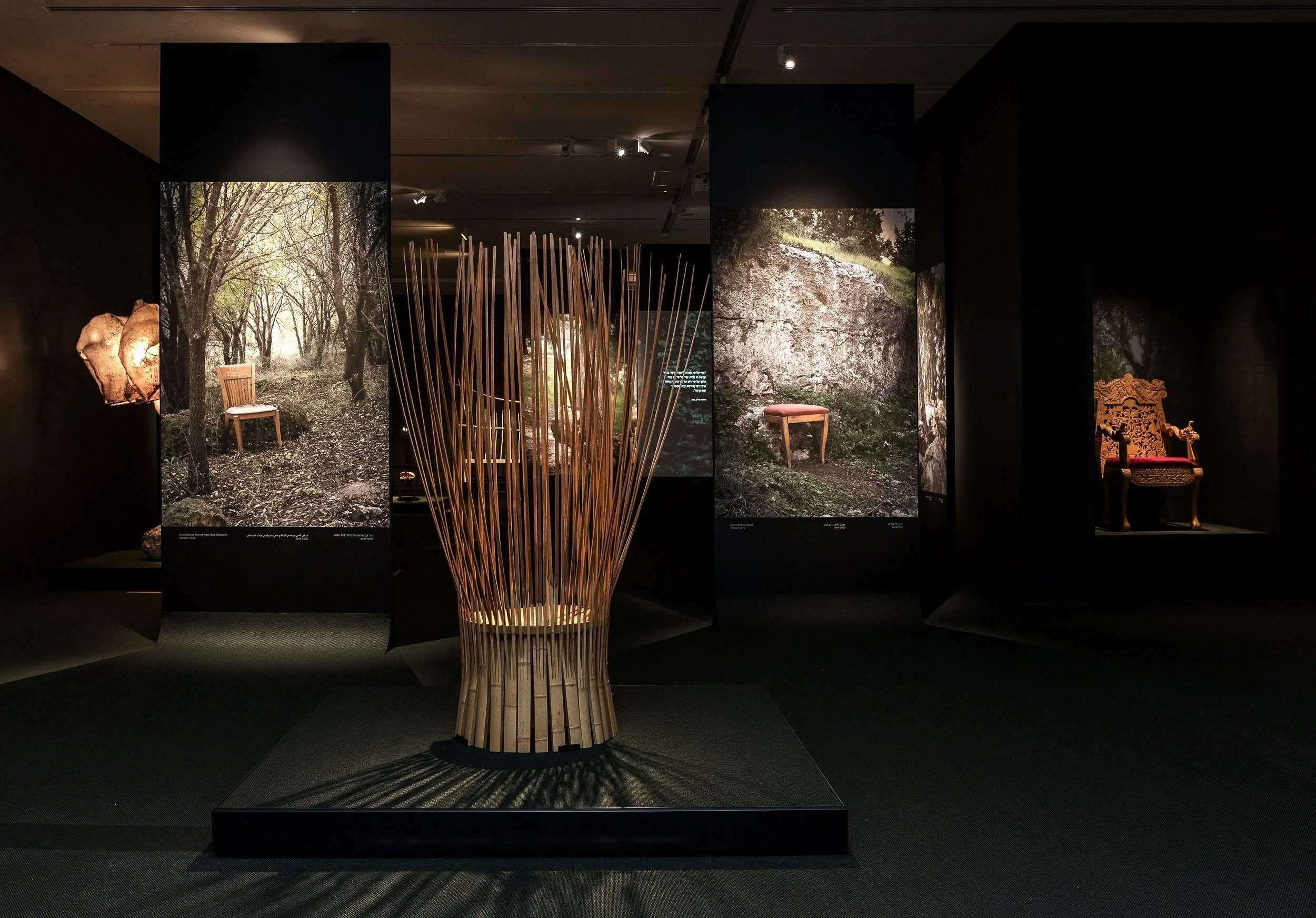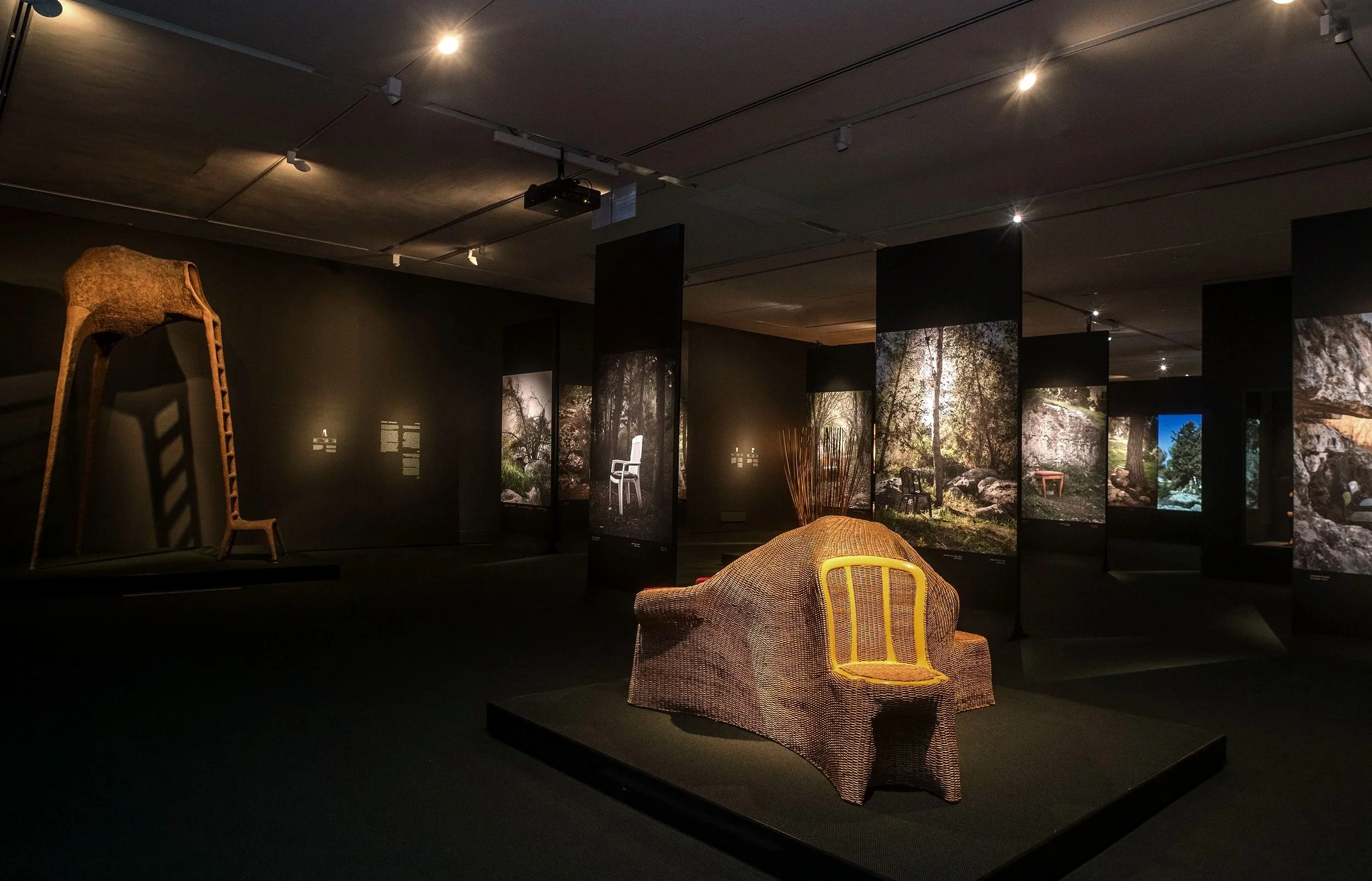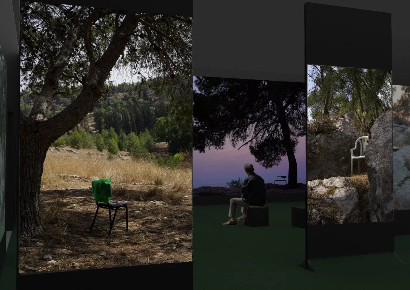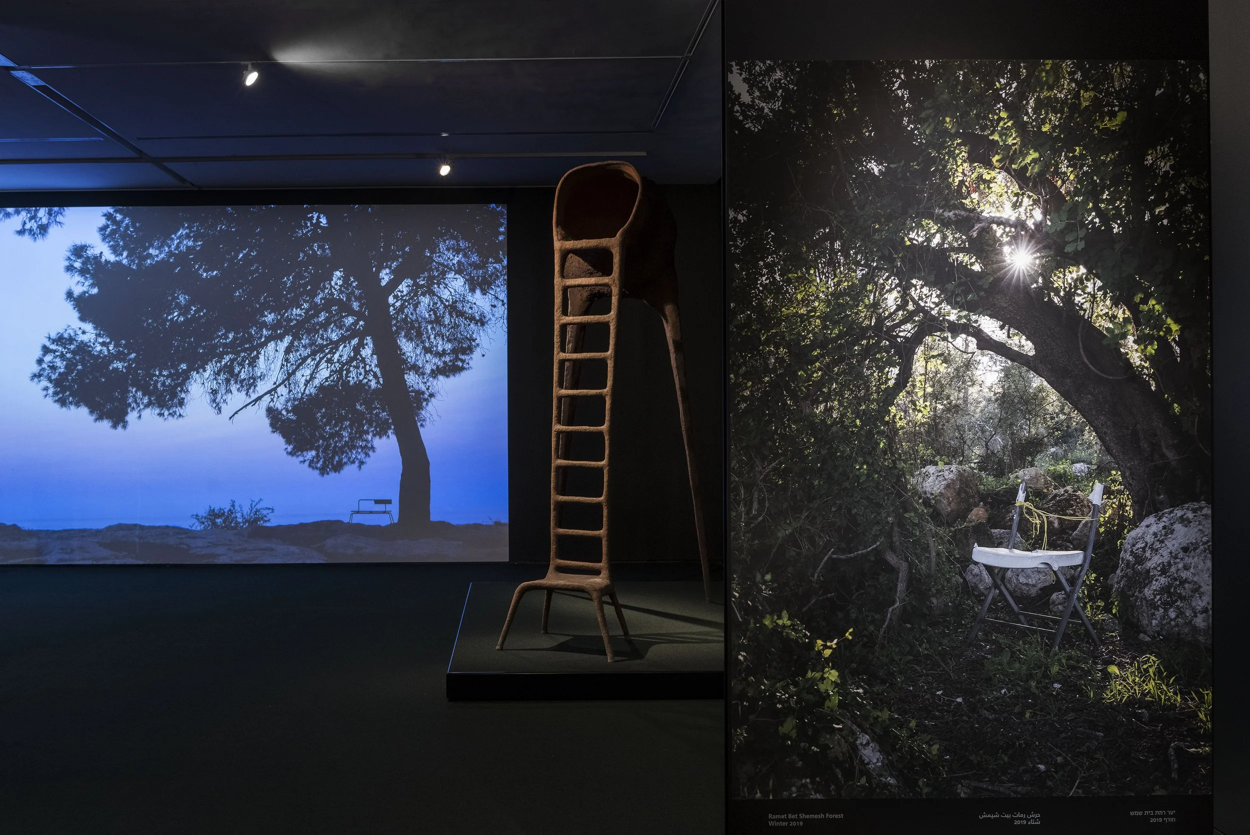 Photographs of these seats, documented in forests across Israel, were the central focus of the exhibition and displayed alongside chairs designed by contemporary artists such as Jurgen Bey and Nacco Carbonell. Initially without predefined size or format, the images were positioned as objects within the space, defining circulation and shaping spatial experience, turning a large open area into a landscape inspired environment and creating a space of wandering.